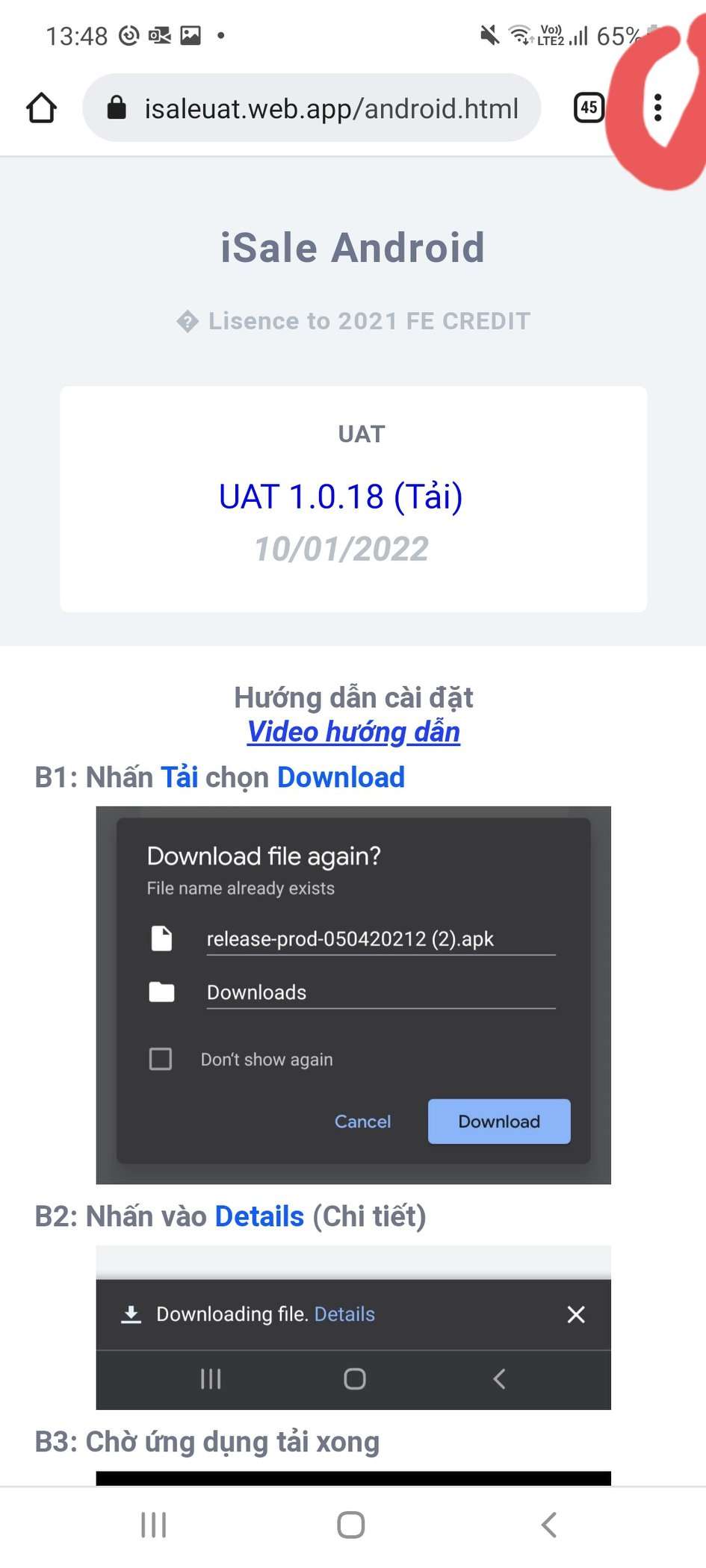Chọn Download (Tải xuống)