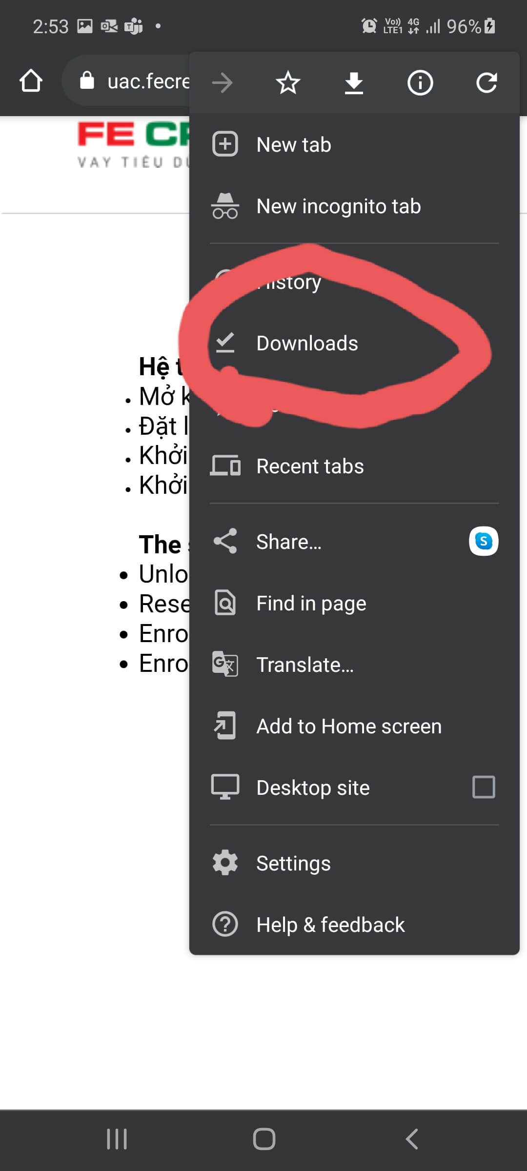 Trường hợp một số thiết bị ko có thao tác ở B2 . Ta có thể nhấn vào dấu như hình